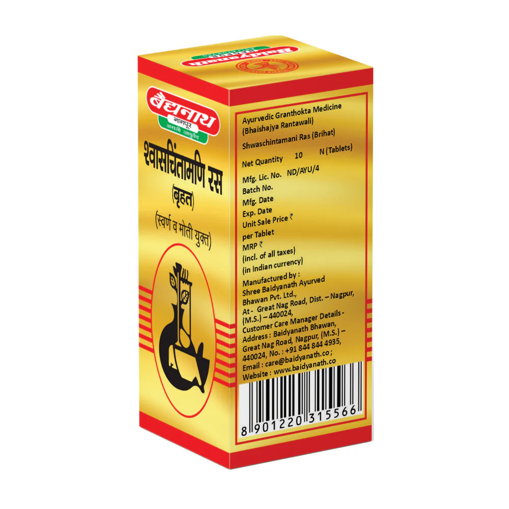 (Bhaishajya Ratnavali) Swas Chintamani Ras is an effective classical Ayurvedic medicine available in tablet form.